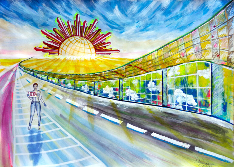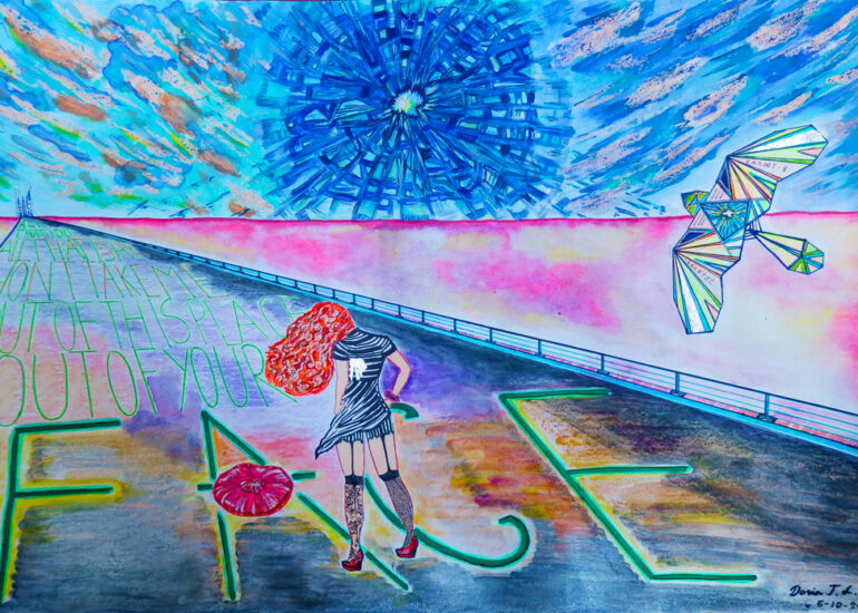 Since I was a little girl I’ve had visions. Surreal stories would play out in my mind’s eye, I would see dramatic landscapes, mythical creatures – brightly, vividly, like a lucid dream. I felt compelled to share them with the world and so I picked up a paint brush. In fact, I see visions everywhere: for example, an idea for my Isra-Alien PsyTrance RaveOlution painting emerged as pattern on a carpet in 2005. All of my art, whether writing or painting, is always symbolical, emotive and conceptual, never random. More often than not it is inspired by my personal life and experiences. I think through my message, untill all of the elements come together as a whole. Sometimes it takes months, sometimes years. I place quality over quantity. To me, it is the most important aspect in art creation. I’d rather do less and do it well, rather than produce an endless stream of meaninglessness. Since 2012 I’ve been focusing primarily on the project of my lifetime – writing my book. I don’t limit myself to one medium. In every medium lies an opportunity to express an artistic vision: whether it is photography, videos, painting, writing or something else entirely.